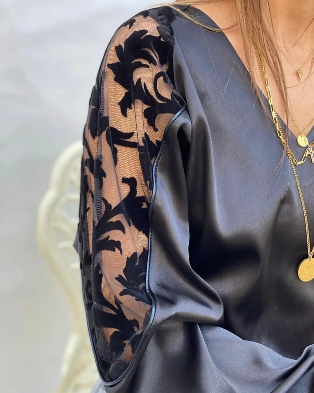 جنس پارچه ساتن گلدوزی روی آستین مخمل. مناسب سایز . رنگبندی فقط مشکی. سایز 1 دور سینه 110 سایز 2 دور سینه 120